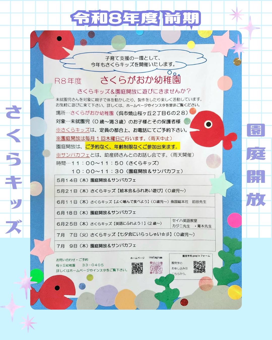 今年度も、「さくらキッズ/園庭開放&サンバカフェ」を開催致します🍀